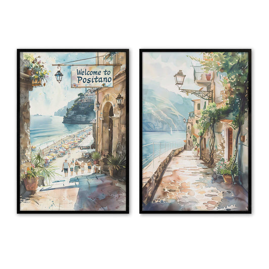 Positano Beachfront Serenade Set of 2 Print on Archival Matte Paper