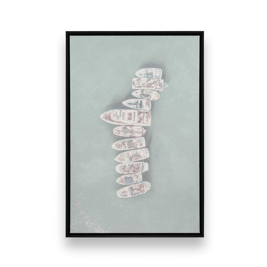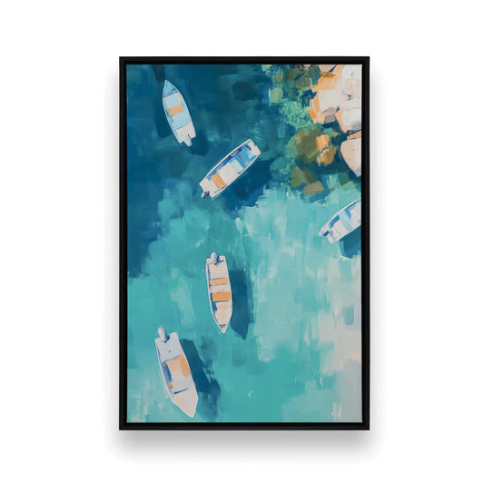 Boats in Blue Bay I Print on Canvas