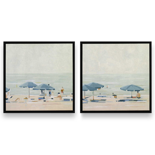 Seaside Umbrella Harmony, Set of 2 Prints on Canvas
