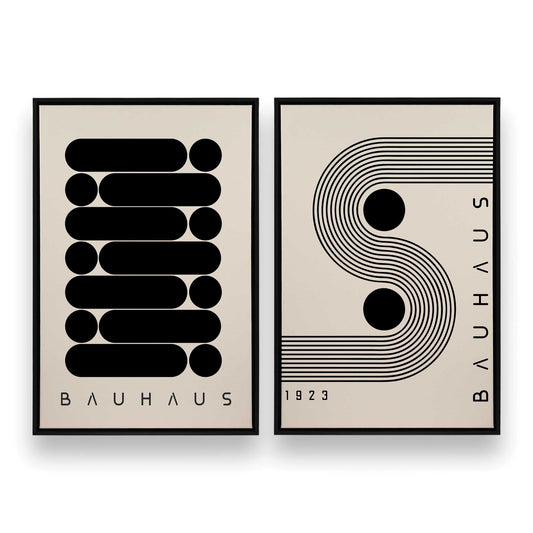 Modern Monochrome Bauhaus, Set of 2 Prints on Canvas