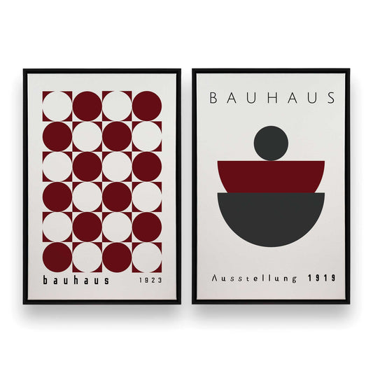 Burgundy Bauhaus Duo, Set of 2 Prints on Canvas