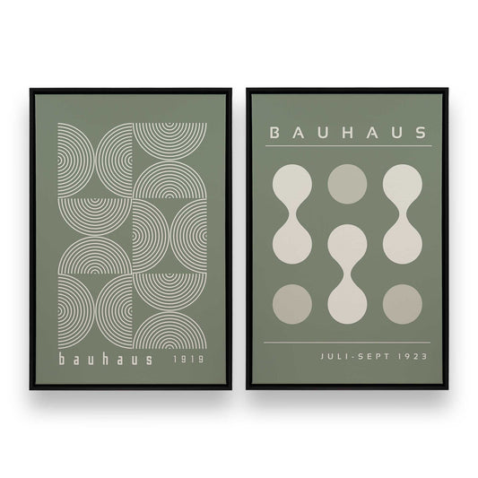 Bauhaus Flow and Composition in Green II, Set of 2 Prints on Canvas