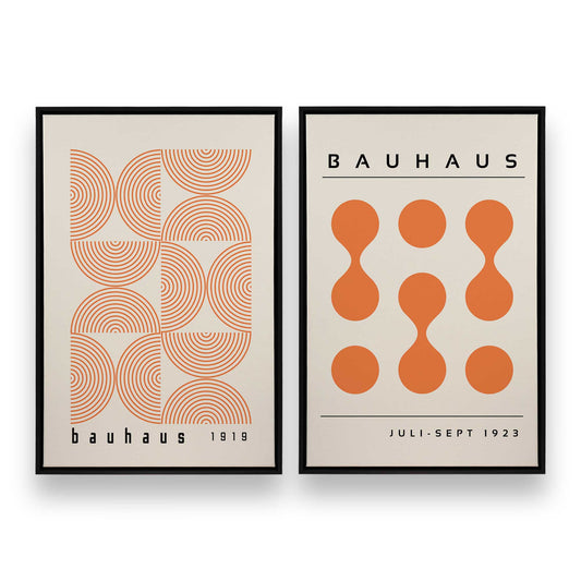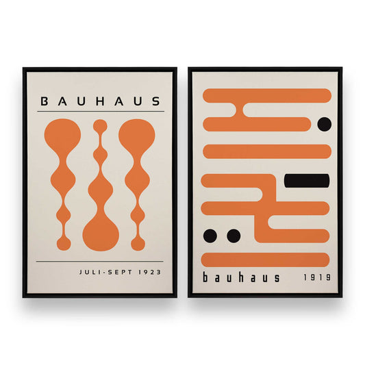 Bauhaus Flow and Composition in Orange, Set of 2 Prints on Canvas