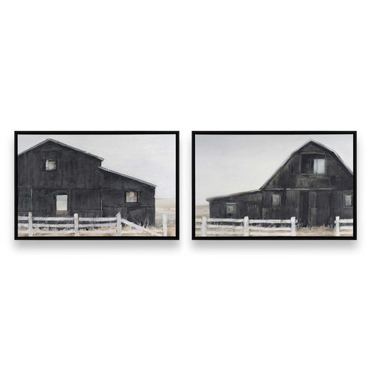 Weathered Black Barns, Set of 2 Prints on Canvas