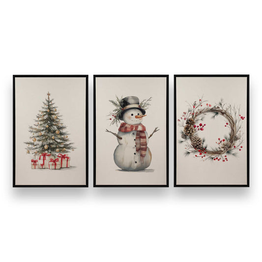 Jolly Little Trio, Set of 3 Prints on Canvas