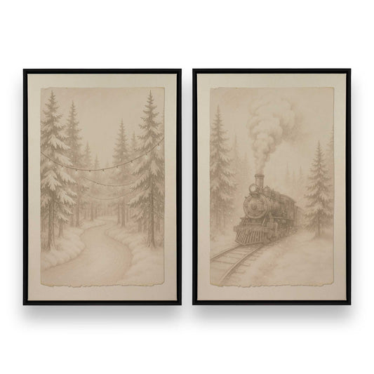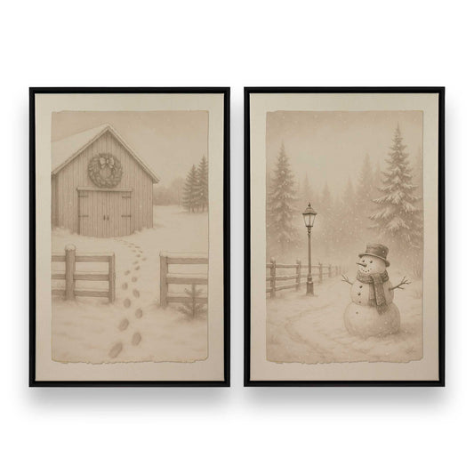 Snowfall Sketches, Set of 2 Prints on Canvas