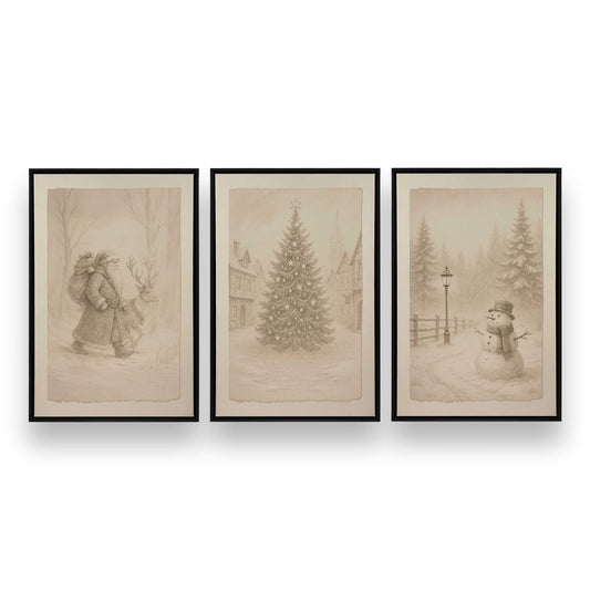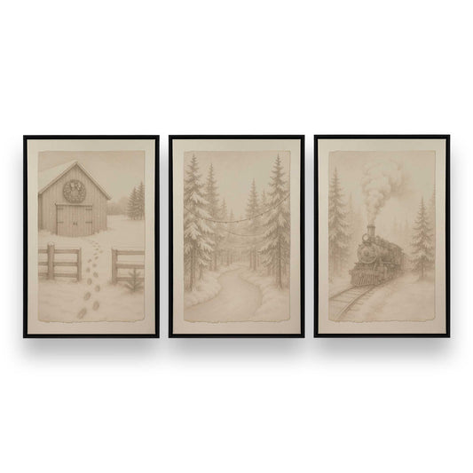 Pathway to Christmas, Set of 3 Prints on Canvas