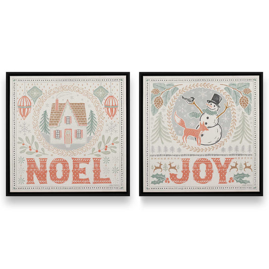 Woodland Holiday Joy, Set of 2 Prints on Canvas