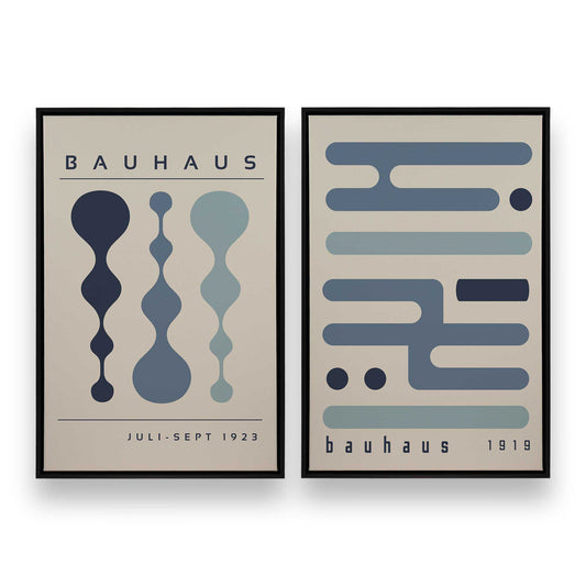 Bauhaus Flow and Composition in Midnight, Set of 2 Prints on Canvas