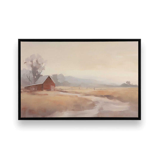 Misty Countryside Barn Print on Canvas