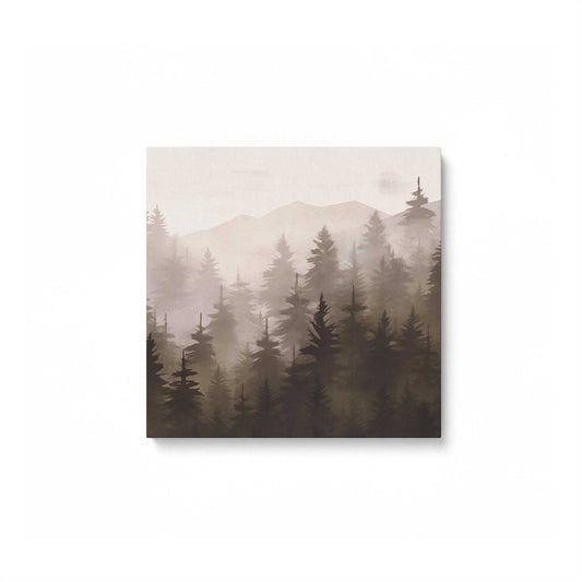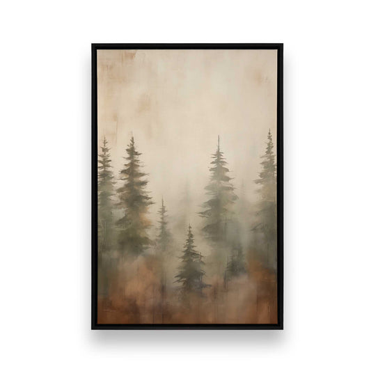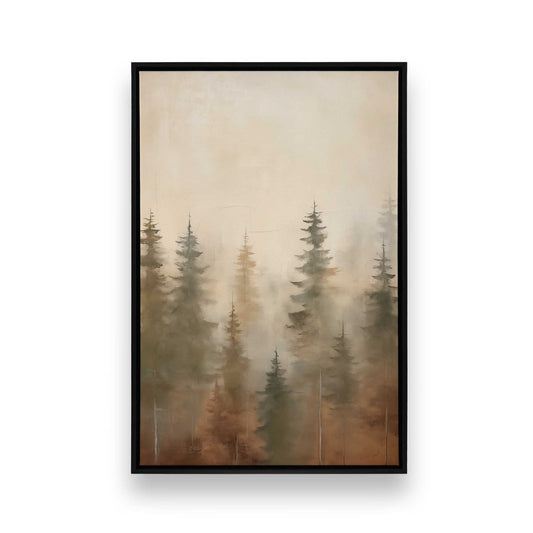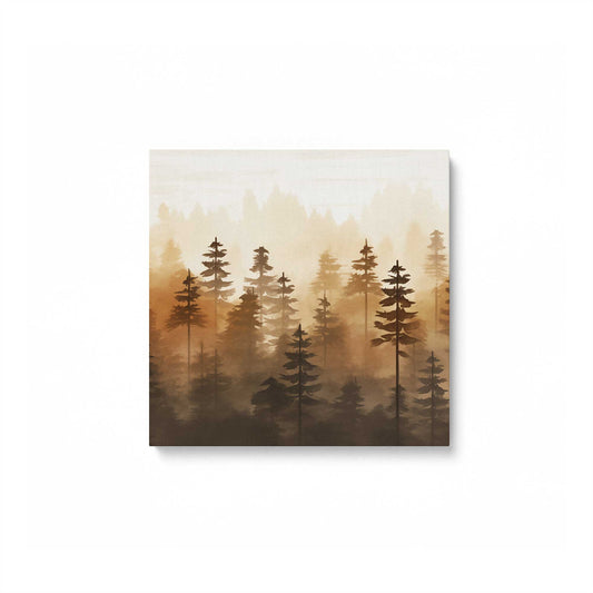 Misty Pine Forest in Brown Print on Canvas