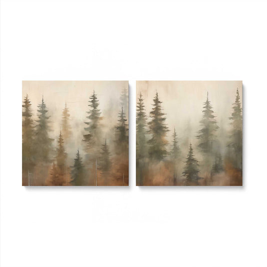 Foggy Autumn Pines, Set of 2 Print on Canvas