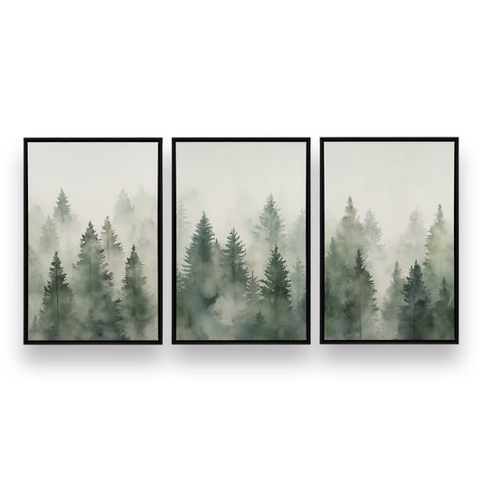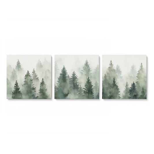 Foggy Morning Woodland, Set of 3 Print on Canvas