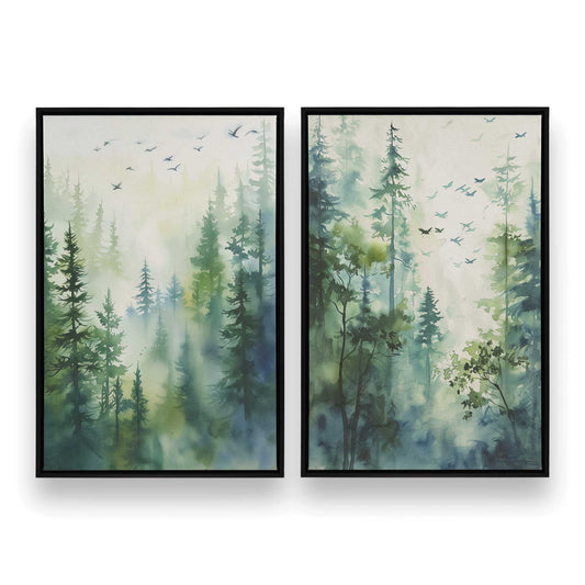 Serene Forest in Flight, Set of 2 Print on Canvas