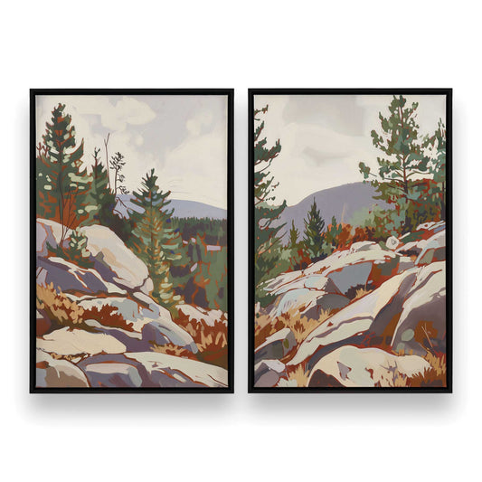Mountain Rocks and Pines, Set of 2 Print on Canvas