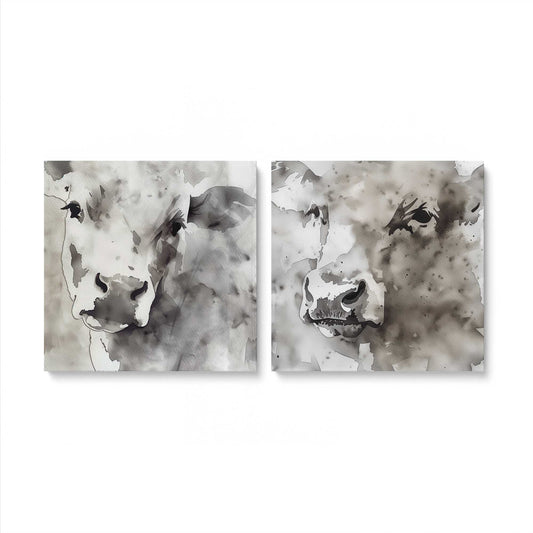 Monochrome Abstract Cows, Set of 2 Print on Canvas