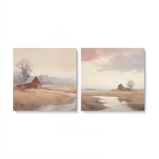 Rustic Barns and Misty Fields, Set of 2 Print on Canvas