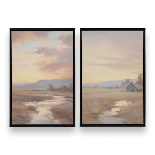 Serene Sunset Over Fields, Set of 2 Print on Canvas