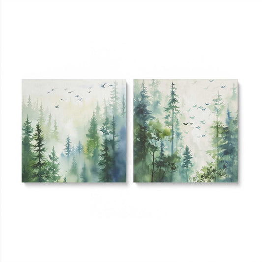 Woodland Birds in Mist, Set of 2 Print on Canvas