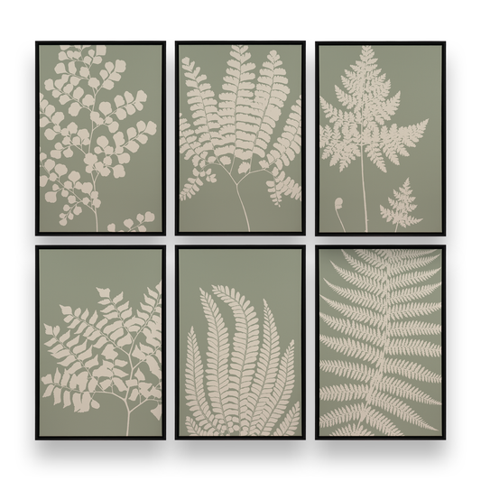 Botanic Harmony in Sage, Set of 6 on Canvas