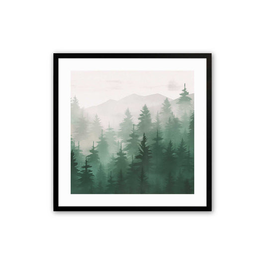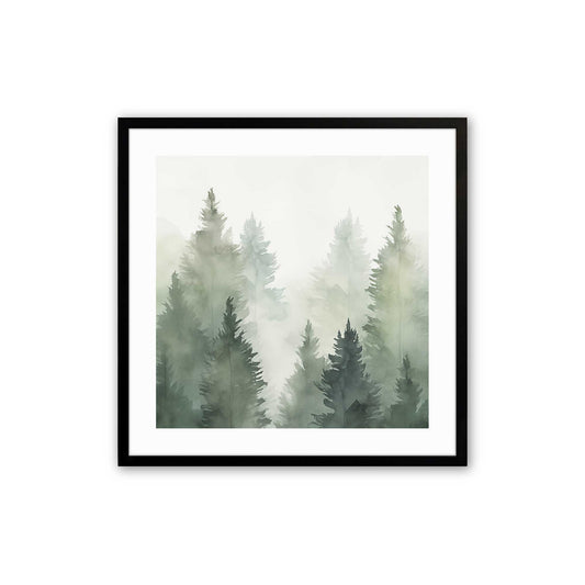 Misty Pine Forest in Green Print