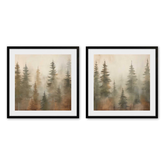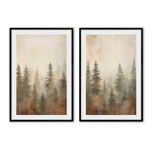 Foggy Autumn Pines Set of 2 Prints