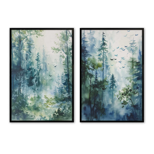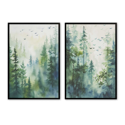 Serene Forest in Flight Set of 2 Prints