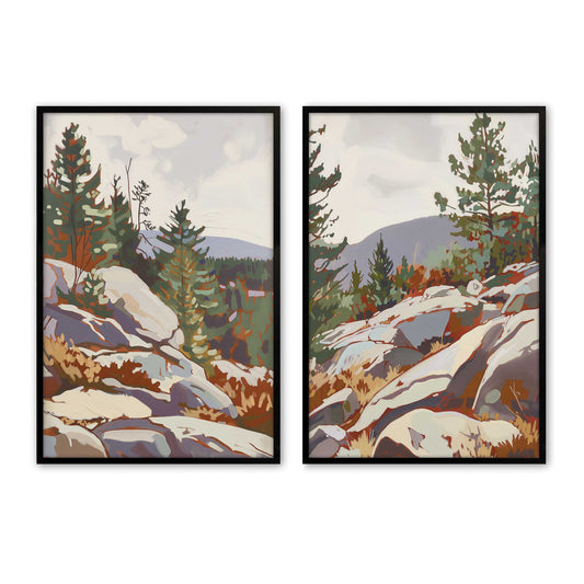 Mountain Rocks and Pines Set of 2 Prints