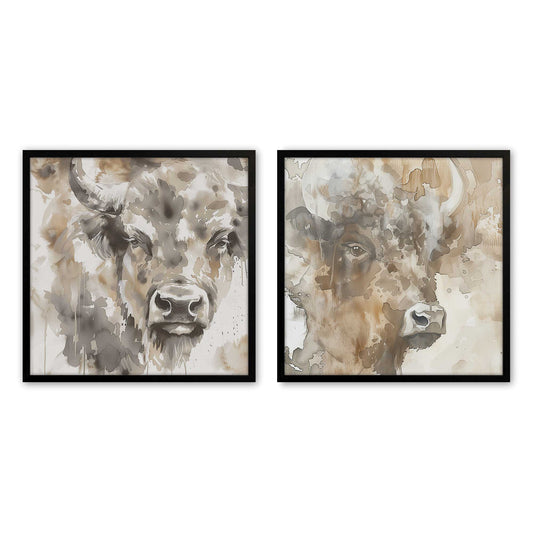 Abstract Buffalo Portraits Set of 2 Prints