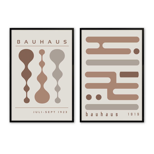 Bauhaus Flow and Composition in Taupe I Set of 2 Prints