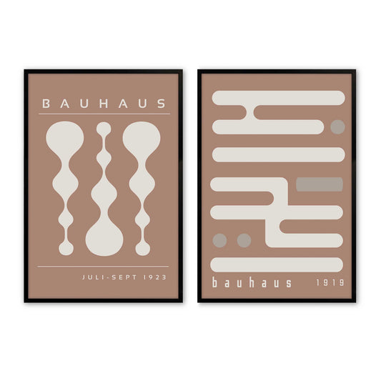 Retro and Circuitry Brown Bauhaus Set of 2 Prints