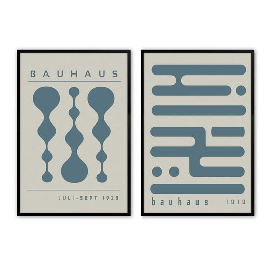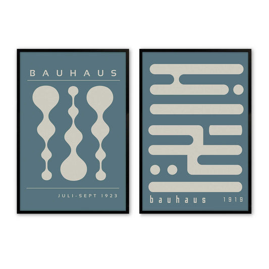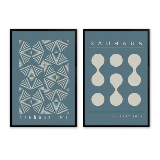Retro and Circuitry Storm Blue Bauhaus Set of 2 Prints