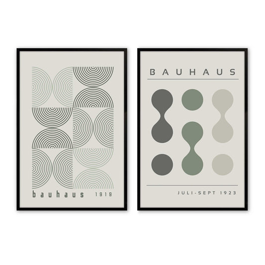Bauhaus Flow and Composition in Green I Set of 2 Prints