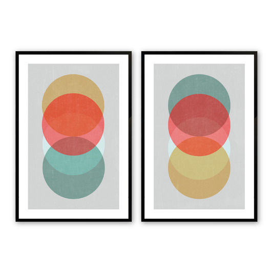Retro and Circuitry Orange Bauhaus Set of 2 Prints