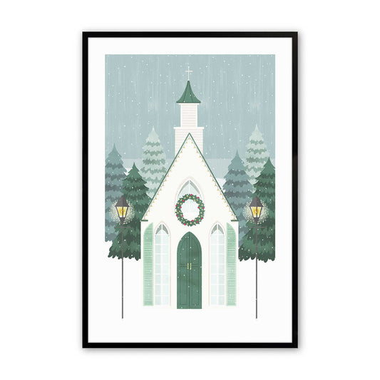 Vintage Winter Church Scene Print
