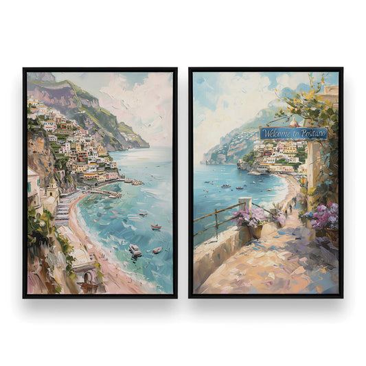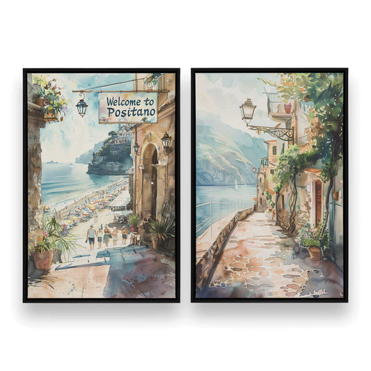 Positano Beachfront Serenade, Set of 2 Print on Canvas